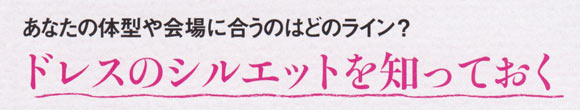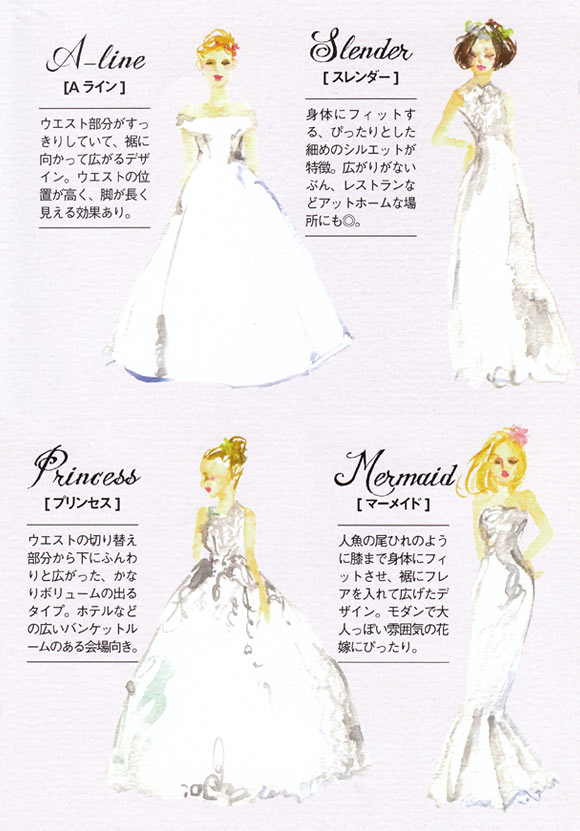 ウエディングドレスというとボリュームのあるスカートを思い浮かべてしまいますが、大きく分けて4つのラインがあるんです。自分らしいラインはどのタイプ?