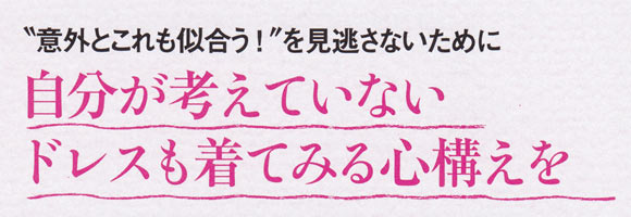 着たいドレスのイメージをはっきりと持っておくことは大切だけど、イメージに縛られて同じようなドレスばかり試着するのはもったいない! 最後の1着は試しに冒険を。
