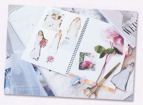 気になる写真を切って貼っていくうちに、自然と自分の好みが見えてくるもの。ドレスショップの人にイメージを伝えるときにも役立ちます。