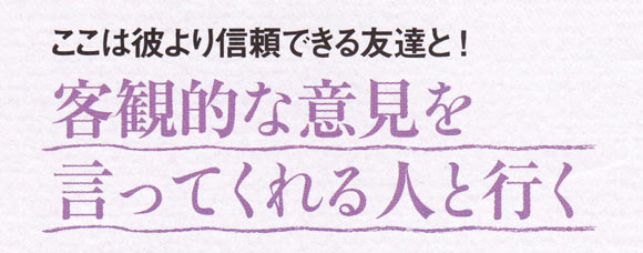 よっぽど仕事がファッション系でセンス抜群! などでない限り、新郎と一緒に行く意味はないという先輩花嫁の意見が多数。持つべきものはおしゃれで毒舌な女友達です。