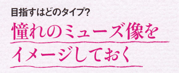 クラシックできちんとしてて…、などと言葉を並べるより“オードリーみたい”と言ったほうが伝わることもあるので、自分のイメージに近いミューズを見つけておくことをおすすめします。