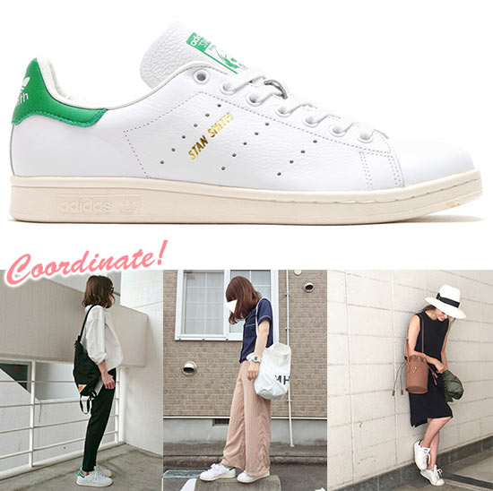 テニスシューズのクリーンな見た目、レザーの高級感、女性らしい細身、の3拍子が揃っている大定番で、お値段も良心的なのが◎