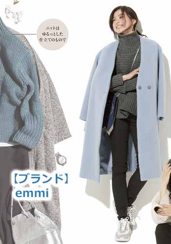 ボリューミーでメンズライクなルックスなので、プリーツスカートなどガーリーコーデに合わせるのがポイントです。